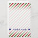 This stationery design features a pattern of red, white and green stripes. These are colours commonly associated with Christmas. It also features a customisable name near the bottom, between two heart shapes. [~Z0000113]