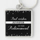 3D looking silver sparkles and words in white, all on a black background. A great Custom Name gift, souvenir, giveaway and party essential to congratulate a man or a woman on their Retirement. A very elegant Congratulations item that you can easily customise.