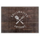 Retro cool personalised GRILLMASTER glass cutting board in a logo-style typography design featuring your custom name and year established on a (printed) dark rustic wood design. Great gift for Father's day or a unique birthday gift for the guy who loves to barbeque or cook.