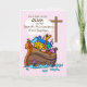 Noah’s Ark on a pink girl’s Baptism card is so precious. The animals are looking out of Noah’s Ark, seeing the cross through the clouds. Sweet card to give to a girl as she celebrates the seventh anniversary of her Baptism. You can personalise the name of that special girl on this card.