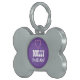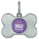 This dog tag with its background of purple and in the shape of a bone is a trendy tag for your dog! Customise with your dog's name and your contact information.