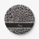 Modern, stylish, chic and trendy personalised custom name silver glitter leopard spots pattern (animal print) with a black diamonds stripe (not real diamonds) with beautiful hearts and dots personalised with your name gifts or monogram gifts or your initials. Pretty girly leopard print gift ideas.