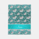 Custom name silver hearts keys turquoise glitter fleece blanket