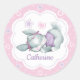 Custom name Sleeping Bunny in pink and purple Classic Round Sticker