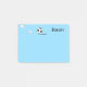 Post-it-Notes shown in blue with a soccer ball print and name.