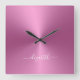 Custom Name Soft Pink Metallic Style Acrylic Square Wall Clock