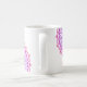 Beautiful mug with a custom name and an original Bohemian Boho Mandala design, purple and pink on a white background.
