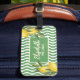 Citrus Fruit Lemon luggage tag is a mediterranean style gift idea for a traveler or anyone taking a gap year in europe. It features a cute wavy background in green and white for a retro vibe.