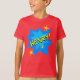 The t-shirt feels and looks great quality, a good thick cotton. It will be a little big for my son, but that means he will be able to wear it and not out grow it too soon. The print was as described on the order when personalised. True size, shape and colour T-shirt- thanks.
