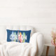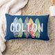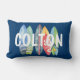 Custom name retro watercolor surfboard blue lumbar pillow. Add your little one's name to make this pillow the perfect addition to their nursery or room.