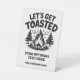 "Let's get toasted" by the campfire! Change the text fields as you wish. Using the editing tool on each side, you can also change the fonts and their sizes and colours if you want. See my store for more camping and hiking items.