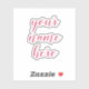 Custom Modern Chic Name Text Script Water Bottle clear Stickers featuring your personalised text in a cute and elegant calligraphy font. The sticker is in a vibrant cute girly pink, font style and colours are fully customisable.