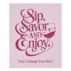Custom Name / Text Sip, Savour, Enjoy Poster
