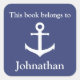 This blue bookplate sticker has a white ship's anchor and a place to personalise the book label sticker with the recipient's name.
