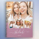 Unique custom gift with 4 favorite photos in a modern photo collage notebook with your name in a trendy hand written script and year below on a purple backdrop. Sweet little personal gift for teens, kids, or besties!