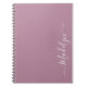 Unique notebook gift with your custom name in a trendy handwritten script on a modern lavender backdrop.