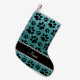 Modern, trendy and girly Personalised custom name turquoise glitter (not real glitter) with an animal black dog paws (animal print) pattern with a pretty black diamond rhinestone stripe (not real diamonds) with beautiful hearts and dots personalised with just add your name gifts or monogram gifts or your initials. Ideal for dog lovers and pet owners who like a little bling!