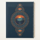 Stay organised in style with the Custom Name Vintage Wilderness Ornamental Mandala Planner. Featuring a stunning design of horizontally aligned mandala motifs, this planner is inspired by the serene beauty of nature. Each mandala showcases a radiant sunset with glowing rays, layered mountains in calming blues and greens, and evergreen tree silhouettes, all framed by intricate ornamental patterns in vibrant orange and teal. Personalise the cover with your name to make this planner uniquely yours or give it as a thoughtful gift. Perfect for tracking goals, appointments, and daily tasks, this planner combines rustic charm, bohemian elegance, and functionality.