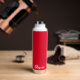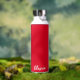 This insulated water bottle is shown in white with a red accent colour and a custom name sample.