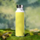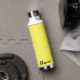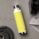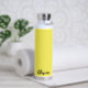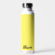 This insulated water bottle is shown in white with a sunny yellow accent colour and a custom name sample.