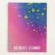 a Custom Name artistic Planner- a special 12 months planner featuring an watercolor pink and blue painting, with sparkles of gold.