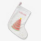 It is decorated with a watercolor watermelon Christmas Tree surrounded by gold stars.