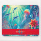 Introducing the Custom Name Whimsical Floral Coral Reef Poinsettia Mouse Pad, a personalised and vibrant addition to your workspace. This enchanting design features glowing coral reefs, dolphins, jellyfish, and poinsettia-like flowers, blending ocean blues with vibrant reds for a stunning underwater fantasy scene. Customise it with your name and monogram initial to make your desk setup uniquely yours. Whether for work or gaming, this whimsical mouse pad adds a touch of oceanic magic while providing smooth and comfortable use for your mouse.