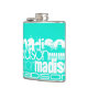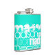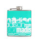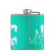 Custom Name, White and Neon Aqua Turquoise Hip Flask