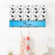 Modern and trendy Custom name white black guitars silhouettes and music notes pattern background and with blue stripe personalised with just add your name gifts or monogram gifts or your initials for a unique gift. Guitar gift ideas for men and boys and girls. Ideal for musicians and guitar players.