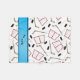 Fun hockey gift ideas. Modern and trendy Custom name sports white with hockey pucks, hockey sticks and a hockey nets pattern background and with sky blue stripe personalised with just add your name gifts or monogram gifts or your initials for a unique gift. Sports gift ideas for men and boys and girls.