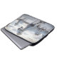 The sleeve is made of nice feeling material and seems very durable. I'm not sure how easy it'll be to clean, but the construction seems sound and the fabric is quick thick. I also like the double zipper. The printing is lovely and appears durable. The white on black contrast is nice, and the design very elegant.