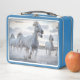 This is a standard metal lunchbox that appears to work just fine. We designed this box ourselves with an uploaded photo and custom text on the front and back. It looks absolutely beautiful except the front of the lunchbox is not centered like it shows in the photo. The print borders don't align with the inset flat part of the box where the preview photo online showed it perfectly centered in there. The back looks nice and centered though.