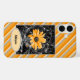 Spring Flash African Daises are beautiful flowers. This phone case template is adorned with a grey framed desaturated close up photograph leaving the colour in the open orange daisy blossom and closed bud to stand out over an orange, ivory and grey diagonal striped background. The framed ivory oval sets off your text. Fill in the template field with your name or initials, remove all text, clear the oval frame or click Customise it! if you'd like to select a different font style, size and colour. In customise under Style Options area check out different phone brands and the iPod available with this design.