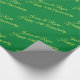 Custom Names, Anniversary, Yellow Script on Green Wrapping Paper