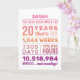 Personalized “You Have Been Loved For 20 Years” birthday card featuring milestone numbers—years, months, weeks, days, hours, and minutes. Add the recipient’s name for a custom touch and edit the inside message to make it your own. A unique, heartfelt birthday card perfect for a 20th birthday celebration.