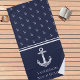 Custom Nautical Anchor Bathroom Ocean Navy Blue Beach Towel