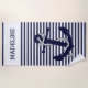 Enjoy total comfort at the beach or sitting poolside, and cool and dry off with this fun, colourful and comfy beach towel. Stand out in the sand with this beautiful contemporary ship anchor, on a classic and chic dark navy blue and white stripes pattern. With room to personalise or customise with name, initials or monogram of your choice or any kind of nautical expression like "Ship Ahoy", "Sail Away", "Anchors Aweigh", or "Bon Voyage", on a white background. Created for the captain, lover of boating, sailing, vacation and bright sunny summer days on the water or beach.