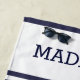 Custom Nautical Anchor Dark Blue White Stripes Beach Towel