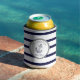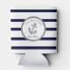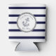 Custom Nautical Anchor Navy Blue stripes Can Cooler