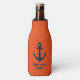 Custom nautical boat anchor bottle coolers. bright orange buoy colour with navy blue ship anchor. Personalizable nautical anchor can coolers with anchor. Maritime design with name initial letters of bride and groom / newly weds couple. Add your own date of marriage and names. Make your own cosy wedding favour / souvenir for guests at your beach theme party. Romantic sailing theme beverage holder design. Perfect for alcoholic drinks like beer. Cool typography. Change the quantity to get the cheapest price per cooler. Maritime sailing / beach theme. Vintage Boat / ship anchor design with custom slogan or quote. Alos great for boating trips, sailing, bridal shower, engagement, bbq, anniversary, reunion gathering,