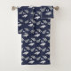 Custom Nautical Navy Blue Seashell Bathroom Beach Towel Set design by Sandy Closs