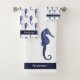 Custom Nautical Seahorse Bathroom Sea Blue Bath Towel Set by Sandy Closs