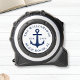 Create a custom nautical tape measure for a beach house, lake house or a boat owner personalised with family name, year, state or another text. White and navy blue design features anchor and text template.