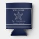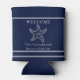 Custom Nautical White Navy Blue Starfish Can Cooler