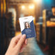 Create a professional and secure look for your team with this Custom Navy Blue Employee ID Badge. Featuring a modern design, this badge includes space for an employee photo, company name, job title, and website. Ideal for corporate offices, healthcare workers, retail staff, and event personnel, ensuring clear identification and brand consistency.