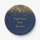 Custom Navy Blue Gold Graduation Party Glitter Her Paper Plate