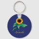 Custom Navy Blue Gold Script Watercolor Sunflower Key Ring