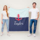 Custom Navy Blue Mint Striped Nautical Design Fleece Blanket