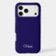 Add a sleek and personal touch to your device with this minimalist navy blue phone case. Featuring a custom name in elegant white cursive at the bottom, this case combines style and identity. Designed to fit iPhone 17 and other models, it offers durable protection with a refined aesthetic. Perfect for everyday use or as a thoughtful gift.