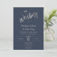Custom Navy Blue Simple Script Silver Foil Wedding Invitation
